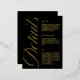 Esta tarjeta de detalles para Bodas negros y brillantes es la manera perfecta de compartir información importante con sus invitados con estilo. Esta elegante tarjeta de detalles presenta un diseño negro elegante con un verdadero acento de Relieve metalizado que le da un toque de lujo y sofisticación. La tarjeta es totalmente personalizable, lo que le permite incluir todos los detalles importantes que sus huéspedes necesitan conocer. Si desea proporcionar información sobre la recepción, el alojamiento o los regalos, puede añadir fácilmente su propio texto. Póngase en contacto con nosotros para obtener ayuda sobre el diseño a través de Zazzle Chat o envíe un correo electrónico a stephanyanddany@gmail.com. Responderemos en 12 horas.