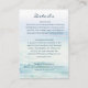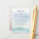 Incluimos esta tarjeta de detalles de la boda con tu invitación para ayudar a tus invitados con información importante sobre tu día especial. Esta impresionante colección de diseño de boda de playa minimalista con acuarela presenta un fondo oceánico sereno y pintado a mano que captura perfectamente la belleza tranquila del mar. Con olas suaves y fluidas en delicados tonos de azul y verde turquesa, y fuentes elegantes y discretas, este diseño emana una sensación de calma y sofisticación. La simplicidad del diseño lo hace sin esfuerzo chic, ofreciendo un sentimiento moderno y sin embargo atemporal que resonará con cualquiera que sueñe con una celebración junto a la playa. Las delicadas acuarelas y el estilo minimalista crean una atmósfera refinada y romántica que complementa la belleza natural de cualquier entorno de playa. Perfecto para parejas que buscan combinar la elegancia con el encanto relajado de una boda costera, esta colección sin duda impresionará a los invitados y establecerá el tono para un evento memorable y pintoresco. Es la elección ideal para parejas que quieren una estética de boda que refleje su amor por el océano y la belleza de la simplicidad. ¡Vea toda la colección para obtener más artículos coincidentes!