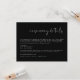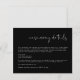 Esta tarjeta de detalles de boda presenta una fuente manuscrita con estilo y un diseño minimalista moderno. Es el complemento perfecto para su suite de invitaciones de boda limpias y contemporáneas. También puede utilizar esta tarjeta para enumerar alojamientos o detalles sobre cualquier evento; baby shower, despedida de soltera, fiesta de jubilación, etc. Edite la mayoría de los textos para satisfacer sus necesidades.