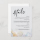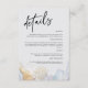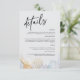 Mantenga a sus invitados informados con estilo con nuestra tarjeta de detalles de boda elegantes y modernos. Con tipografía de escritura negra chic combinada con texto sans-serif moderno, esta tarjeta es perfecta para compartir información esencial de la boda, como detalles de la recepción, alojamiento, registro y más. Los suaves acentos florales de acuarela y dorados añaden un toque de sofisticación y elegancia. Totalmente personalizable, esta tarjeta asegura que sus invitados tengan todos los detalles que necesitan mientras complementa el tema de su boda. Ideal para bodas modernas, minimalistas o románticas, este diseño añade un toque refinado a su suite de papelería de boda.