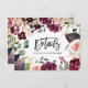 Tarjeta de detalles de invitación a boda floral color rosa, burdeos y higo acuático. Acuarela floral, follaje y fruta pintada a mano. Parte de una suite boda. El color de fondo se puede personalizar.