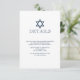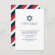 Tarjeta Rsvp Mitzvah azul marino y rojo Bar con una estrella de David audaz que crea un maravilloso punto focal en este rsvp contemporáneo. En la parte trasera hay rayas azul marino, blancas y rojas. Personalice los colores de esta tarjeta de respuesta para satisfacer sus necesidades para la ceremonia de la mayoría de edad de su hijo y verla de inmediato. Si le gusta el diseño de la tarjeta de detalles Bar and Bat Mitzvah y desea comprar tarjetas de coordinación, por favor visite VG Invita en Zazzle
