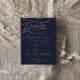 Esta romántica tarjeta de Relieve metalizado dorado caligrafía y detalles navales es perfecta para un boda sencillo. El moderno diseño clásico presenta vistosos remolinos y florituras con una magnífica y elegante tipografía con letras a mano en lujoso Relieve metalizado dorado prensado.