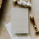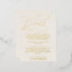 Esta tarjeta de detalles romántica caligrafía de Relieve metalizado dorado marfil es perfecta para un boda sencillo. El moderno diseño clásico presenta vistosos remolinos y florituras con una magnífica y elegante tipografía con letras a mano en lujoso Relieve metalizado dorado prensado.
