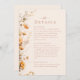 Complete su suite boda con esta tarjeta de detalles Boho Terracotta Wildflowers. Con sus suaves acuarelas floridas en cálidos tonos de terracota y sus naranjas quemados, este diseño aporta un encanto rústico y refinado a su boda de otoño. Perfecto para compartir información importante como alojamiento, direcciones o itinerario de fin de semana, esta tarjeta mantiene a sus huéspedes informados mientras se mantiene en contacto con su estética bohemia, inspirada en la naturaleza. Personalizable completo para satisfacer sus necesidades bodas.