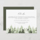 Este boda detalla la tarjeta del recinto con pinos color agua verde y una elegante fuente caligráfica. Es la adición perfecta a su moderna suite boda boscosa bohemia. Parar con cualquier cosa de la colección CLOVER para un aspecto cohesivo.