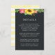 La parte delantera de la tarjeta está decorada con girasoles en la parte superior, adornada con flores rosas y vegetación. Edita todo o parte del texto. Puede añadir cualquier detalle que necesite, por ejemplo: información de recepción, evento sólo para adultos, dirección del sitio web, información del registro, alojamiento, código de vestimenta, barra de caja, etc. La parte posterior de la invitación tiene un patrón de rayas de color amarillo claro. Esta tarjeta coincide con una colección de mi tienda.