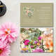 Añada un toque elegante y cuidado a su suite boda con esta tarjeta de detalles florales de color verde sabio. La parte delantera cuenta con un suave ramo de melocotón y flores de primavera crema, perfecto para incluir la recepción, el alojamiento, el código de vestimenta o el enlace a la página web. El otro lado muestra un vibrante jardín acuático de flores primaverales, que le da un ambiente fresco y romántico a su celebración.