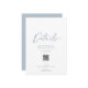 Esta elegante tarjeta de detalles de boda presenta un fondo blanco nítido con un suave y polvoriento texto azul en un diseño limpio y moderno. Un elegante encabezado de guión y un código QR integrado guían a sus invitados a su sitio web boda para toda la información importante: lugar, alojamiento, horario y más. Perfecto para un estilo boda clásico y romántico.