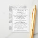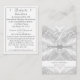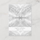 El diseño de la tarjeta Classic Catholic Monogrammed Details muestra el texto en una elegante fuente plateada dentro de un borde plateado. Se muestran dos pequeñas cruzas en la parte superior de cada lado del encabezado. El reverso presenta un elegante fondo satinado a la parte inicial del nuevo apellido de la pareja, que se muestra en una gran letra blanca. Debajo se muestran los nombres de la pareja y la fecha de boda contra un respaldo blanco. Muy elegante.