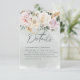 El diseño se caracteriza por sus rosas blancas y rosas negras y por su marco medio de hierba de pampas marrón sobre un suave fondo de color verde agua. Esta tarjeta es parte de la colección Boho Pampas & Pink Roses Boda Suite creada por Simply Farmhouse Press.