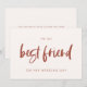 Una tarjeta de regalo simple y minimalista para escribir un mensaje personal y sincero a tu mejor amiga en su día de boda. Totalmente personalizable con tus colores favoritos. Puedes agregar un mensaje en la parte posterior, o dejarlo en blanco si prefieres escribir tu mensaje a mano más tarde.