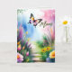 Mariposa acuarela y flores silvestres. Flores rosas claras y oscuras sobre un fondo azul y verde azulado. El interior tiene un buen mensaje para mamá o escribe el tuyo propio. El interior tiene un cielo acuarela, azul oscuro. Flores silvestres a ambos lados de la tarjeta.