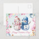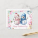 Una tarjeta sencilla del Día de San Valentín con una adorable pareja de muñecos de nieve (una chica y un chico) rodeados de flores de acuarela rosadas. Tema invernal. Edite con la Herramienta de Diseño para mover y cambiar el tamaño de los elementos de este diseño y personalizarlo.