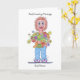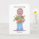 Dibujo animado de una mujer sosteniendo un ramo de flores. El arte de la tarjeta de felicitación está diseñado para ser utilizado para cualquier ocasión de tarjeta de felicitación, como; Día de San Valentín, tarjeta de cumpleaños, tarjeta de recuperación, tarjeta de agradecimiento, etc.
