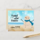 Tarjeta de Invitación móvil de vacaciones en playa Sandy Snowman... "La arena es la nueva nieve" es la leyenda de la tipografía en serif y guion en nuestra bonita invitación de vacaciones en movimiento con una playa de arena y un "muñeco de nieve" hecho de arena. El saludo delante de la tarjeta dice "Saludos de feriado desde nuestro nuevo hogar". La parte posterior de la tarjeta contiene todos los detalles que su familia y amigos necesitarán saber sobre su traslado a un clima más cálido con las playas. Todo el texto (excepto "La arena es la nueva nieve") se puede revisar fácilmente en la plantilla de personalización.