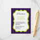 Esta tarjeta de direcciones Ashley de tamaño 4x5 con franja verde lima y morada es perfecta para que cualquier pareja la coloque dentro de sus invitaciones de boda para que sus destinatarios tengan direcciones a la ceremonia y a donde se celebra la recepción. Estas vienen con sobres blancos estándar, pero puedes simplemente desecharlos ya que tus invitaciones no los necesitarán.