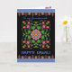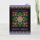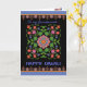 Una tarjeta de felicitación bonita de Diwali para los abuelos, con un modelo brillantemente coloreado de Rangoli y una frontera del naranja, flores rosadas y azules y un adorno de Rangoli, de un collage de papel pintado a mano de Judy Adamson. Parte de la colección elegante y Painterly de "Rangoli".