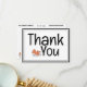 Esta carta es de doble cara, lo que la hace linda sin importar el lado que veas. El frente muestra las palabras "Gracias" en letras gigantes. Un dibujo de un corgi rojo se está inclinando y sonriendo con el texto. Hay dos bordes negros alrededor de los bordes de la tarjeta que ayudan a terminar el diseño. Gire la tarjeta para ver el mismo corgi en la esquina inferior izquierda. Hay un borde de pequeñas huellas de cachorros que cruzan la parte inferior y la superior. En el centro de la parte superior hay un espacio abierto para que pongas tu nombre para crear un papel especial y personalizado.