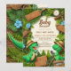 Tarjeta de ducha de dinosaurio bebé niño editable