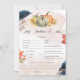 Diseñada para nuestra colección de Baby Shower Little Pumpkin, esta tarjeta de personalizable Baby Predictions & Advice Card incluye fondo rosa rubor, calabaza verde y naranja, texto rosa de purpurina dorado y hojas de oro con letra manuscrita. Elementos coincidentes disponibles.