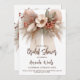 Tarjeta de ducha de moda boho con flores neutras, pasto de pampas y suaves tonos tierra, perfecta para celebrar a la futura novia con un estilo moderno y elegante.