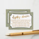 Si estás hospedando una ducha sin regalo para una futura novia, esta carta festiva y moderna podría ser la elección para ti. Sobre insignias blancas elegantes y usando un tipo de letra informal de escritura a mano, añadí un encabezado gráfico de tipografía que dice "ducha de pantalla" en el frente, junto con "a" y "de" en el lado de la etiqueta de regalo. Cada una de estas cabeceras fue embellecida con una textura de Relieve metalizado de oro falso para una vibración festiva añadida. Detrás de las insignias, el fondo de la tarjeta está cubierto por un modelo de Relieve metalizado de oro simulado. Se ha creado un campo de plantilla para ofrecer instrucciones a los clientes que no cumplan su regalo, en un color de color dorado correspondiente. Por favor, siéntase libre de cambiar la redacción de la manera que desee. hay muchas alternativas populares a este texto, si desea un cambio. El fondo se estableció en un color verde de salvia modificable; también puede cambiarlo a cualquier color que prefiera. // 100 // Diseñado por Melody Watson para la Muserie de papel.
