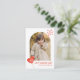 Cuta tarjeta de El día de San Valentín en aula con tu foto vertical dentro de un marco de arco con corazones rojos revoloteadores y un chupón de corazón XO. Personalice la parte delantera de la tarjeta de foto del El día de San Valentín con un saludo personalizado y su nombre. La tarjeta se invierte para mostrar un patrón de succión del corazón rojo.