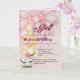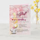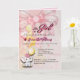 Una invitación de baby shower para niña plegada que presenta un fondo suave rosa, un lazo decorativo y una ilustración de elefante adorable con globos. El diseño combina elementos juguetones con una disposición suave y elegante. Totalmente personalizable con detalles del evento, lo que la hace perfecta para baby showers, celebraciones y bienvenidas a una nueva bebé.