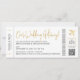 Moda Elegante y Moderno Tarjeta de invitación todo en uno para una boda de destino en cualquier parte del mundo incluye un avión de oro falso de lujo con el logo del centro del corazón y detalles auténticos como código de barras, asignación de asientos y código QR personalizado que puede vincular su propio sitio web boda y enlace RSVP en línea. La información de viaje de los huéspedes está incluida en la parte trasera para que puedas enviar todos los detalles sobre un diseño eficiente de tarjeta todo en uno con detalles de alojamiento y de bloque de habitación, eventos extra de fin de semana, información de contacto de agente de viajes, información del registro, y más! Parte de una extensa colección de artículos de papelería para bodas con temática de viajes únicos y modernos por Destinos de uva de papel. Póngase en contacto con el diseñador para coordinar elementos e ideas.