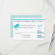 Tarjeta de embarque de boda rsvp para coincidir con el pase de embarque de Chipre. Mapa de Chipre con palmeras en un color azul océano.