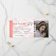 Tarjeta de boda de pasaje de embarque con monograma moderno con un fondo blanco y salmón simple, una foto de la pareja comprometida, un avión con una estela en bucle y una plantilla personalizada de save the date fácil de personalizar. No olvide actualizar el texto del monograma en la parte posterior.
