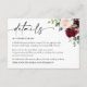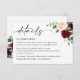 Tarjeta de Detalles de Boda con Flores Burgundy y Blush Boho. Esta tarjeta se caracteriza por rosas y flores burgundy y blush boho con dos fuentes modernas de alta clase que dan forma a las tendencias de los eventos festivos presentes y futuros.