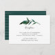 Diseñada para coordinar con nuestra colección de boda Palma en Corona, esta elegante tarjeta de recepción botánica tropical verde y blanca presenta una sola hoja de palma en acuarela verde oscuro con los detalles de la recepción de su boda, horario y dirección.