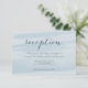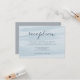 Nuestra tarjeta de encierre de recepción de boda de Chiffon en azul pastel y gris presenta un fondo de lavado de acuarela en tonos suaves de azul cielo pastel, acentuado con caligrafía chic y letra serif en pizarra polvorienta. Personalice con los detalles de su recepción de boda, incluyendo horario, lugar y cualquier información adicional como transporte o estacionamiento. Diseñado para coordinar con nuestra suite de invitaciones de boda Chiffon en Cielo.