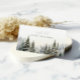 Esta elegante tarjeta de información de registro con tema de invierno es el encarte perfecto para combinar con su suite de invitación de boda o baby shower "Snow in Love". Con delicados árboles de pino pintados con acuarela sobre un fondo de montañas brumosas, el diseño evoca una escena serena y romántica de un bosque invernal. La frase "Registrado en: Crate and Barrel" está escrita en una combinación de fuente serif y script elegante, manteniendo el aspecto limpio, cálido e invitante.