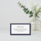 Tarjeta de enclusura de detalles de azul marino clásico. Texto de bloque clásico dentro de un borde de azul marino y gris. Parte trasera azul marino.