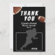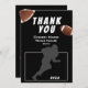 Tarjeta de entrenador de fútbol americano. Fútbol gracias tarjeta de entrenador con texto de agradecimiento, nombre del entrenador, nombre del equipo, año, nombre y pelotas de fútbol. La tarjeta tiene una silueta de un futbolista en acción. Personaliza la tarjeta con tu texto. ¡Gran carta de agradecimiento para el entrenador del equipo de fútbol!