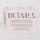 Tarjeta de gabinete Boda de letras florales rosadas formales para detalles adicionales - diseño de papel de boda con detalles florales dibujado a mano con dibujos florales que embellecen la palabra 'DETAILS', con texto de escritura a mano para los nombres.