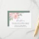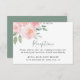 Elegante tarjeta de gabinete de invitación a la boda para los detalles de la recepción. Esta tarjeta presenta un ramo acuarela de flores rosadas de colores vivos, un guión verde salado moderno y elegante que se coordina con la vegetación del ramo floral y una tipografía sencilla. Puedes personalizar el título ("Recepción", "Detalles", "Celebración", etc.), tus eventos y lugares, y cualquier otro detalle.