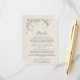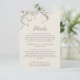 Esta tarjeta dorada con crema floral y detalles grises es perfecta para una boda elegante. El diseño moderno del boho presenta un caprichoso arreglo de flores dibujadas a mano, hojas y productos botánicos sobre un fondo crema.