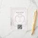 Tarjeta de gabinete boda de cisne romántica con código QR. Los cisnes adornan la parte delantera y trasera de esta tarjeta de recinto boda que ofrece un ambiente romántico. Los monogramas de su pareja de bodas se encuentran en una cara de la tarjeta. Utilice el código QR del otro lado para el registro del boda, el sitio web u otro enlace web. Agregar sus monogramas y detalles de vínculo Utilice la plantilla para crear su propia tarjeta de gabinete de código QR boda de cisne romántico.