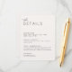 Mejore su suite boda con nuestra tarjeta de detalles Creamy Neutrals. Con un tipo minimalista en un fondo neutro, ofrece un amplio espacio para todos los detalles de tu evento. Diseñado para complementar a la perfección nuestra invitación Creamy Neutrals, es el epítome de la elegancia moderna para las parejas que valoran la simplicidad y el estilo.