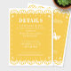 Utilice esta hermosa tarjeta de detalles de estilo papel picado para agregar información adicional a sus invitaciones para bodas. La parte posterior presenta un diseño floral. Perfecto para un boda mexicano tradicional o moderno.