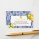 Añada un toque mediterráneo encantador a su ducha de bebé con esta tarjeta de envoltorio Blue Tile Lemon Diaper Raffle. Con elegantes azulejos italianos y ilustraciones de limón recién hechos, esta tarjeta neutra de género es perfecta para invitar a los huéspedes a participar en una divertida y reflexiva rifa de pañales. Ideal para la costa de Amalfi o para las duchas de temática italiana, este lugar combina con gusto con una decoración de inspiración cítrica. Simplemente incluya su invitación para animar a los huéspedes a traer pañales para la oportunidad de ganar un premio!
