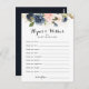 Esta tarjeta floral de invierno de bebé espera y deseos es perfecta para una moderna ducha de bebé. El diseño se compone de bonitos azules oscuros pintados a mano, azules, marinos, rosados, ondulados, flores doradas y follaje verde, repartidos en elegantes ramos.