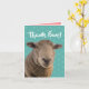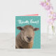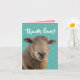 Foto de un oveja (una oveja) con la frase "¡Gracias Ewe!" encima. Una linda tarjeta de agradecimiento para los amantes de los animales.