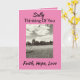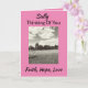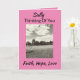 Expresa tus sinceros deseos a una superviviente de cáncer de mama con un mensaje de esperanza de "fe, esperanza, amor". La tarjeta negra y gris en negrita con toques de rosa tiene una imagen inspiradora de un niño volando una cometa en un día soleado. El verso positivo de "pensar en rosa" en el interior enviará tus pensamientos de apoyo y cuidado.