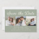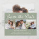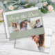 Tarjeta de fecha de boda verde menta/salvia con 4 fotos de compromiso, 2 caras. Contácteme para obtener ayuda con sus personalizaciones o para solicitar productos Zazzle adicionales que coincidan o coordinen con sus eventos especiales.
