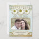 Elegante tarjeta de fecha de guardar con tu propia foto favorita enmarcada por un diseño rústico con margaritas en un fondo pintado con madera desgastada y encaje. El texto "Guardar la fecha" en la parte delantera es una imagen estilizada y puedes eliminarlo si prefieres texto personalizado.